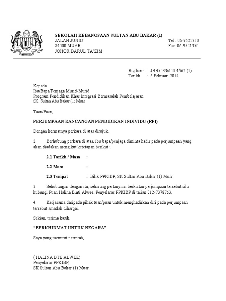 Surat Panggilan Ibubapa Rpi Pdf